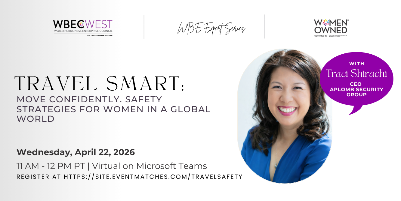 Join this WBE Expert Series session with Traci Shirachi to learn how to approach travel with confidence. This session will walk you through practical safety strategies before, during, and after your trip, helping you make informed decisions at every stage of your journey.